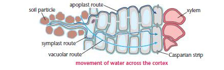 (i) the apoplast route across the cortex (ii) the symplast route across the cortex.