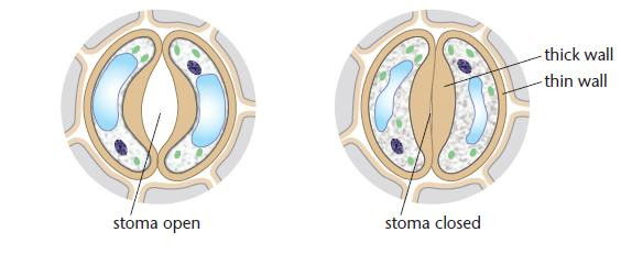 • the increase in hydrostatic pressure leads to the opening of the stomata.