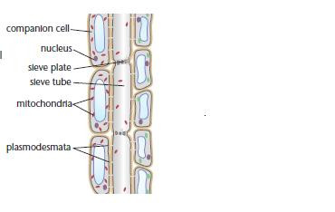 • The sieve tubes have no nucleus but are alive because of cytoplasmic connections (plasmodesmata) with the companion cell.