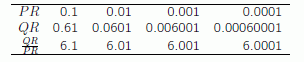 The gradient of PQ will be a better approximation if we take Q closer to P. The table below shows the effect of reducing PR successively, and recalculating the gradient.