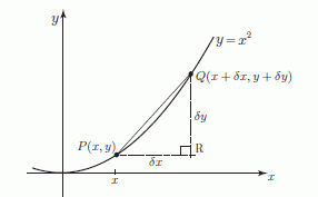 A sketch of part of this graph shown below. We have marked point P(x, f(x)) and the neighbouring point Q(x + dx, f(x +d x)).