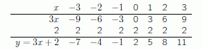 Look at the table of values and note that for every unit increase in x we always get an increase of 3 units in y. In other words, y increases as a rate of 3 units, for every unit increase in x. We say that “the rate of change of y with respect to x is 3”.