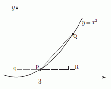 The graph of y = x2. P is the point (3, 9). Q is a nearby point.