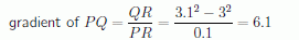 Suppose we choose point Q so that PR = 0.1. The x coordinate of Q is then 3.1 and its y coordinate is 3.12. Knowing these values we can calculate the change in y divided by the change in x and hence the gradient of the line PQ.