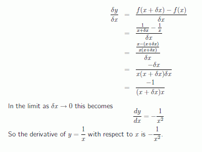 Suppose we want to differentiate the function f(x) = 1/x from first principles.